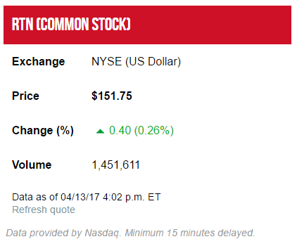 Raytheon. (15 de Abril de 2017). Investor Relations. Obtenido de Raytheon RTN (Common Stock): http://investor.raytheon.com/phoenix.zhtml?c=84193&p=irol-irhome