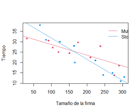 Sea un determinado mercado de seguros dentro del cual se aplican con cierta periodicidad innovaciones financieras para maximizar la tasa de ganancia de las firmas o empresas que innovan y en el que ocurre un determinado efecto “bola de nieve” para que la innovación sea adoptada por otras firmas. Se desea determinar la relación existente de la velocidad a la cual una innovación financiera es adoptada por una firma (la respuesta Y) con el tamaño de la empresa aseguradora (medida por el monto total de activos de la misma) y con el tipo financiero de la empresa aseguradora (si es accionaria o mutual).